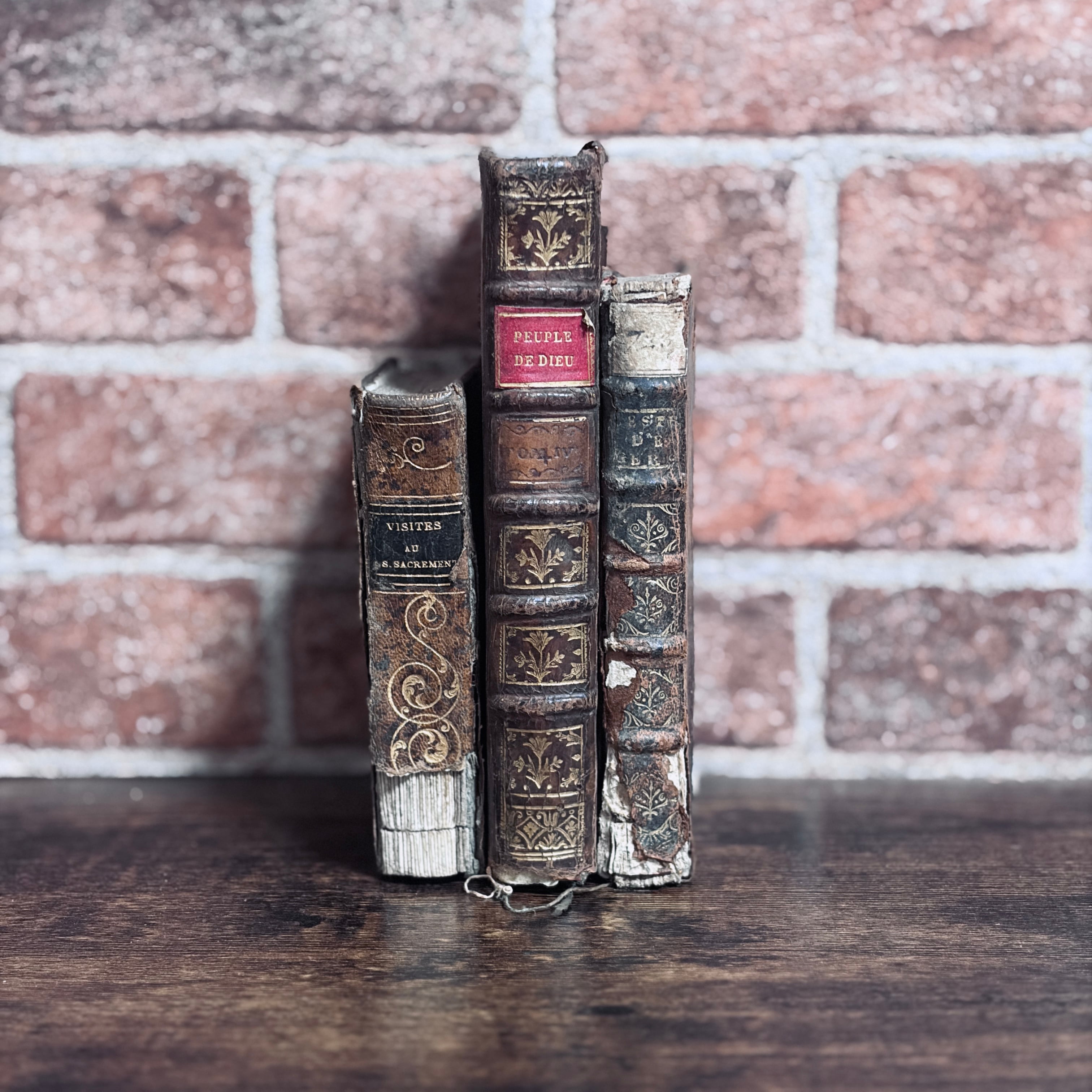 この3冊の洋書は、どれも貴重な古書。年月を経るにつれて増していく味わい深さと歴史的価値が、所有者の知的好奇心を刺激します。この重厚感漂う洋書には、他にはない価値が詰まっています。